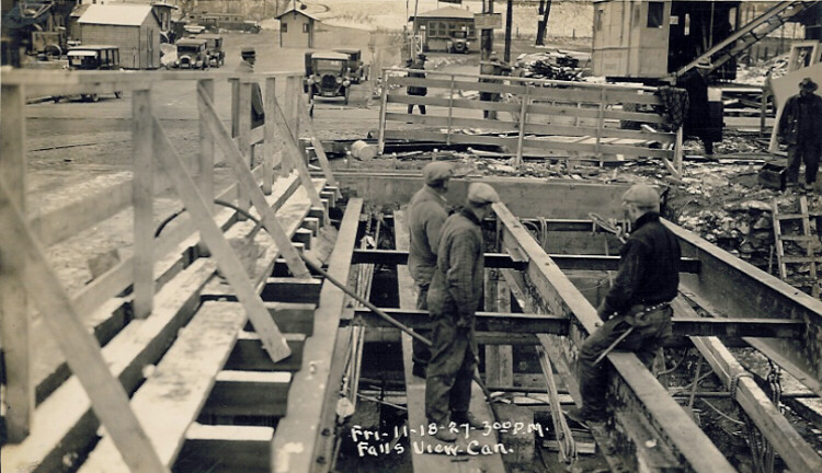 Raising of the Falls View Bridge 1927 - Workmen survey the scene