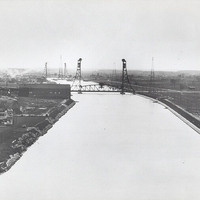 - en-CA Bridge #14 and swing bridge can be seen down the waterway in this picture. This portion of the canal was abandoned following the construction of the Welland by-pass.