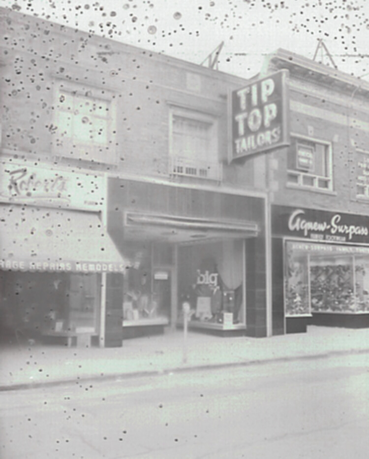 - en-CA Tip Top Tailors on Queen Street between Robert's Furs and Agnew - Surpass Family Footwear