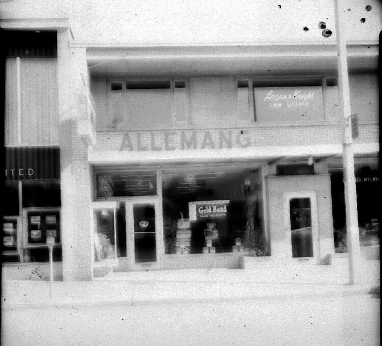 Type:storefront; No. of negatives: 3; Photos included: 0; Notes: interior and exterior of store; Client: Allemang Paints