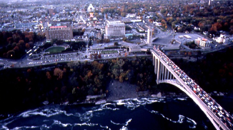 Maple Leaf Village viewed from the United States, Honeymoon Bridge, Foxhead & Brock Hotels