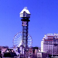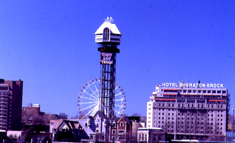 - en-CA Image circa 1979 ; Maple Leaf Village Tower was also known as the Oneida Tower, the Fuji Tower, The Kodak Tower and is currently the Niagara Falls Casino Tower ;