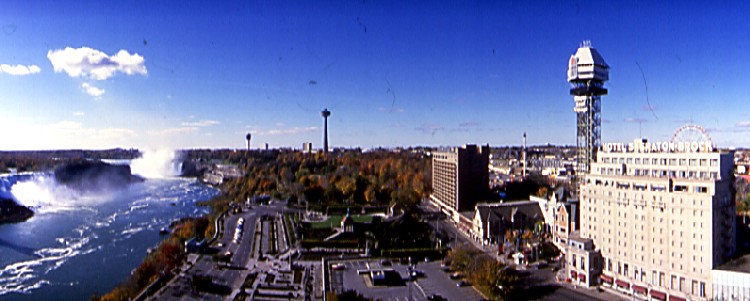 - Scan from a 35mm colour slide ; American and Horseshoe Falls, Minolta Tower in background ;