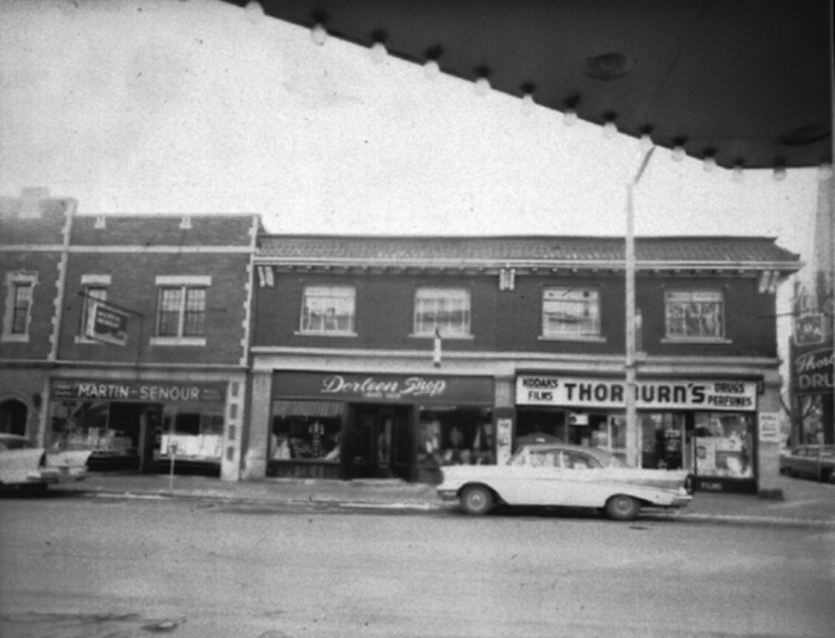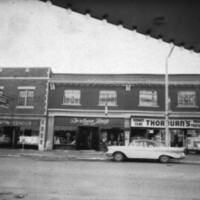 en-CA The buildings in this image are, from left to right, 'Martin-Senour Paints', Dorleen Shop Ladie's Wear' and 'Thorburn's Drugstore'.