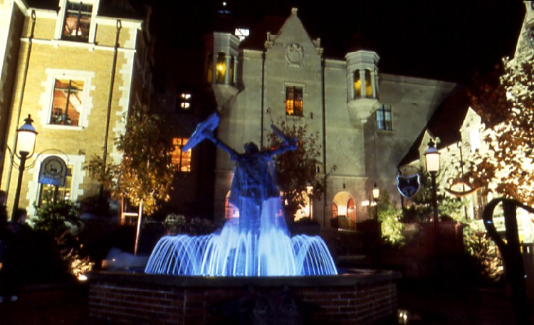 Maple Leaf Village exterior illuminated at night