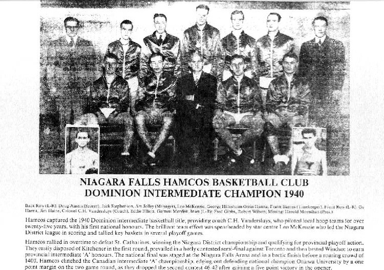 - Niagara Falls Sports Wall of Fame - Hamcos Basketball Club 1940 era 1900 - 1950
