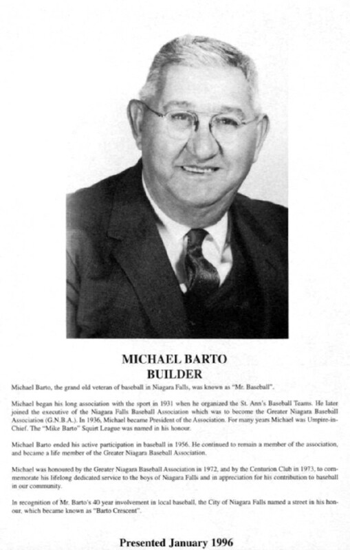 - Niagara Falls Sports Wall of Fame - Michael Barto Baseball Builder era 1931 - 1950