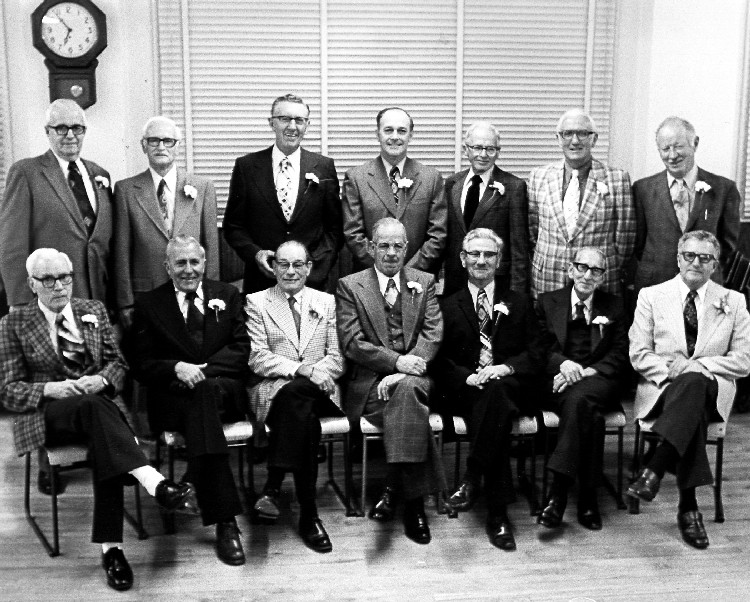- en-CA Front Row L-R: Fred Bowyer, Denton Parks, Clarence Palmer, Allan Delaney, Neil Palmer, Jimmy Holt, George Caswell ; Back Row: L-R Gordon Sicily, Claude Morningstar, Jack Monroe, Len Fanstone, Charles Kiemele, Ormond Embleton, Frank Monroe ; names provided by Len Fanstone and George Caswell November 14 2003 ;