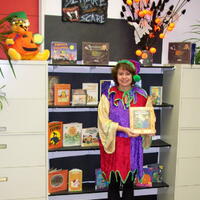 Manager of Children's Services Inge Saczkowski dressed for the department's Halloween programme