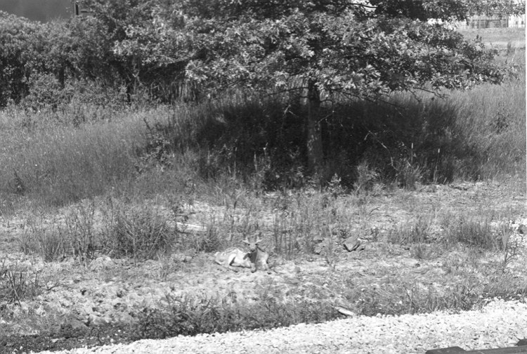- en-CA Deer resting on the grounds of the Cyanamid Plant