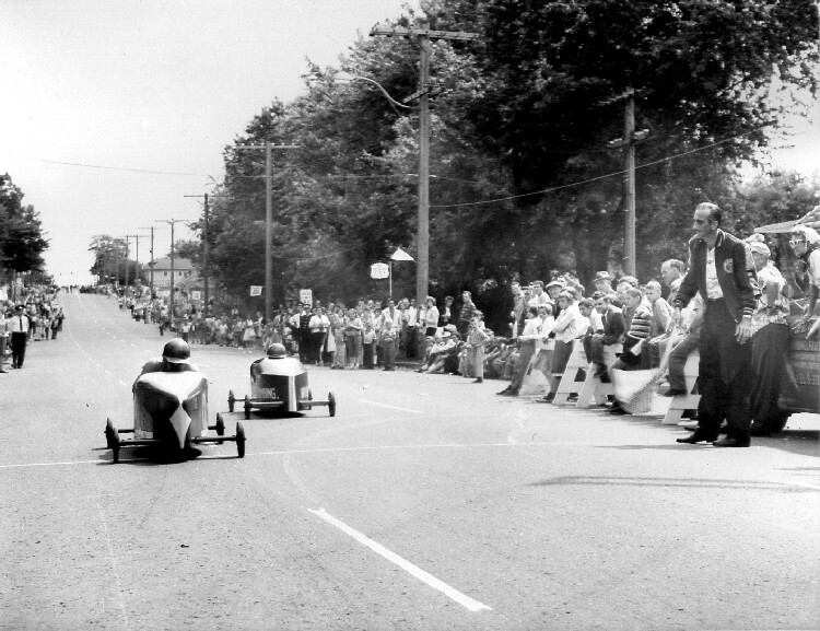 4th annual Optimist Club Soap Box Derby 1961 racing down Drummond Hill