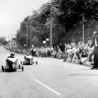 - 4th annual Optimist Club Soap Box Derby 1961 racing down Drummond Hill