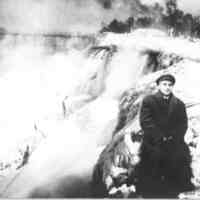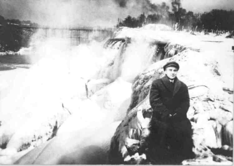 Ernest Fox - Self Portrait, sitting on Luna Island, by the American Falls in Winter