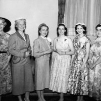 - en-CA L-R: Verna Ainlay, Marguerite Downing, Audrey McPherson, Janet Henry, Margaret Lyon, Marion Irvine ; photograph donated to the Library Nov 15 2003 ;