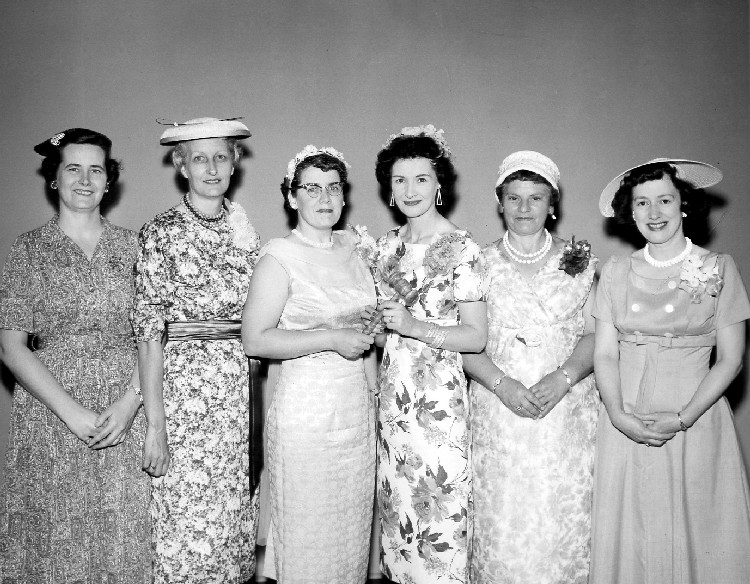 - en-CA L-R: Janet Henry, Verna Ainlay, Marion Irvine, Margaret Lyon, Dorothy Dracup, Evelyn Golding ; photograph donated to the Library Nov 15 2003 ;