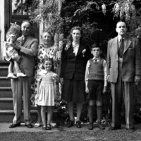 F H Leslie owner of the Niagara Falls Review with son Bruce and their wives and children