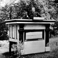 en-CA A note concerning the pulpit is attached to the back, it reads This pulpit was originally built in a log hut at Stamford in the year 1788. In 1815 it was taken Capt. McMicking - who was under General Brock - and placed in a small Presbyterian Church, built by Capt. McMicking for the use of the garrison stationed at Niagara. In 1826 it was again removed by Capt. McMicking to a much larger church, and Governor Maitland contributed largely to the building. Governor-General Maitland built his castle in the park, now known as Governor Park". The ruins are still to be seen and visitors carry away portions of brick and stone, as souvenirs of the old castle ...