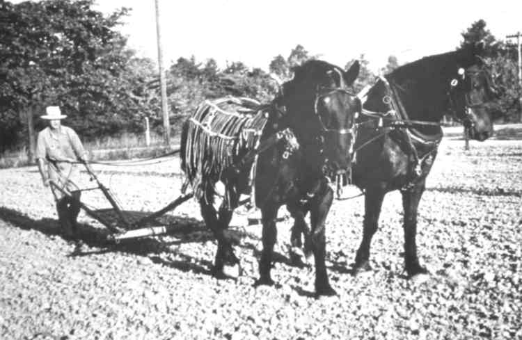 - Farmer using horses to plow his field
