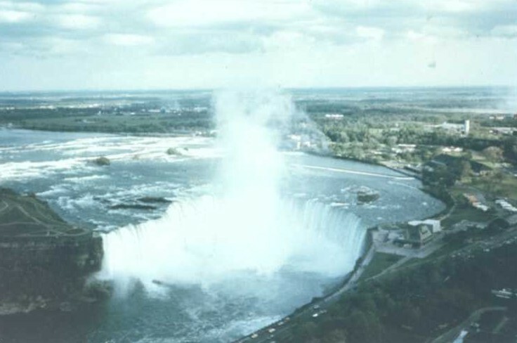 - Aerial view of Horseshoe Falls, Terrapin Point (left), Table Rock (right)