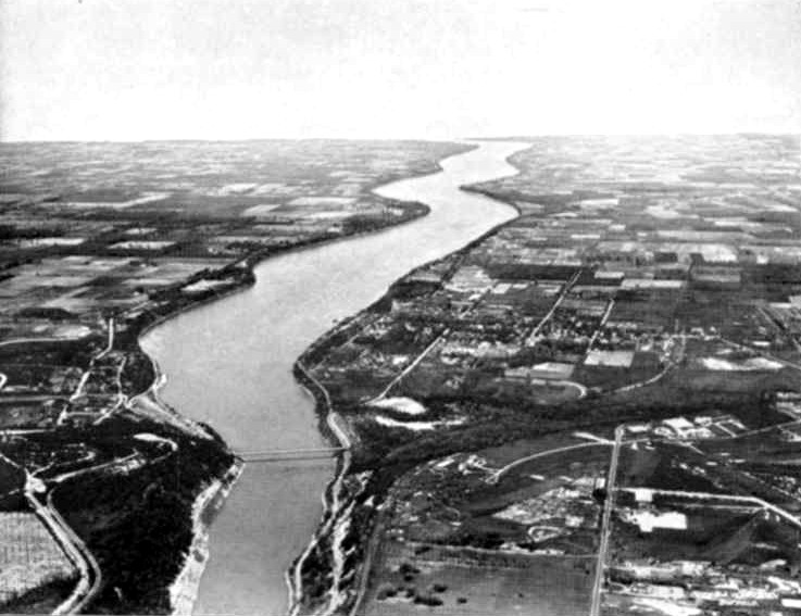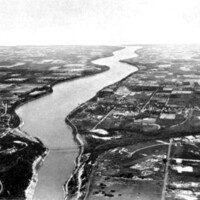- Aerial view of the Lower Niagara River, with the Queenston - Lewiston Bridge in the foreground