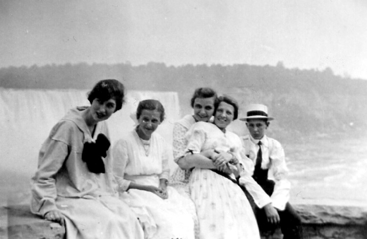 - Unknown tourists, American Falls in background