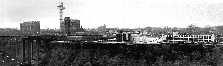 - Left to right, Rainbow Bridge, Sheraton Foxhead, Oneida Tower, Sheraton Brock, Niagara Falls Museum, Michael's Inn