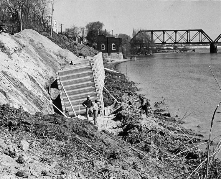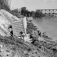 Shoring the Bank at Fort Erie - International Railway Bridge and Waterworks building in Background
