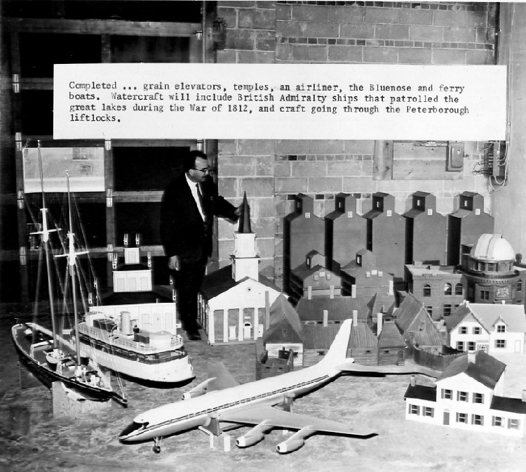 Press release photograph of models being built to become part of Canadia model city, Niagara Falls