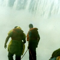 en-CA From the personal collection of George Bailey ; This image may not be reproduced without the written permission of George Bailey ; Steven Trotter and Lori Martin became the first male-female duo to go over the Falls in a barrel. They suffered only minor scratches and bruises. Trotter who had previously gone over the Falls in 1985 said he did the stunt as a Father's day gift ;