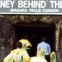 en-CA From the personal collection of George Bailey ; This image may not be reproduced without the written permission of George Bailey ; Steven Trotter and Lori Martin became the first male-female duo to go over the Falls in a barrel. They suffered only minor scratches and bruises. Trotter who had previously gone over the Falls in 1985 said he did the stunt as a Father's day gift ;