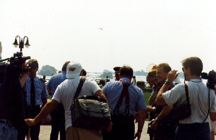 en-CA From the personal collection of George Bailey ; This image may not be reproduced without the written permission of George Bailey ; Steven Trotter and Lori Martin became the first male-female duo to go over the Falls in a barrel. They suffered only minor scratches and bruises. Trotter who had previously gone over the Falls in 1985 said he did the stunt as a Father's day gift ;