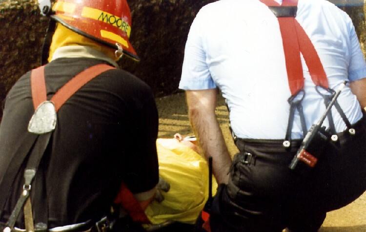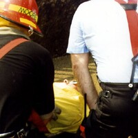 Fire fighters attending Steven Trotter after being rescued after he & Lori Martin went over Falls