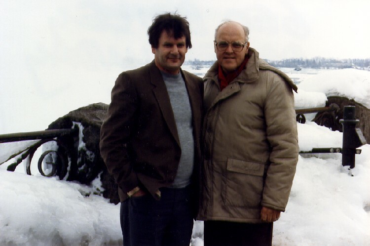 John "David" Munday shown with George Bailey at the brink of the Horseshoe Falls
