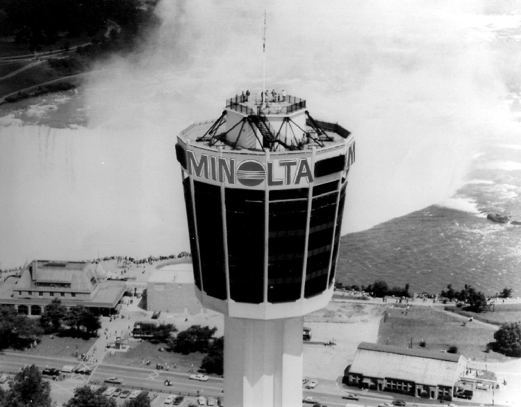 - en-CA The Minolta was the first of Niagara's Towers, erected in 1962 it rises 325 feet above the Horseshoe Falls ;
