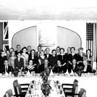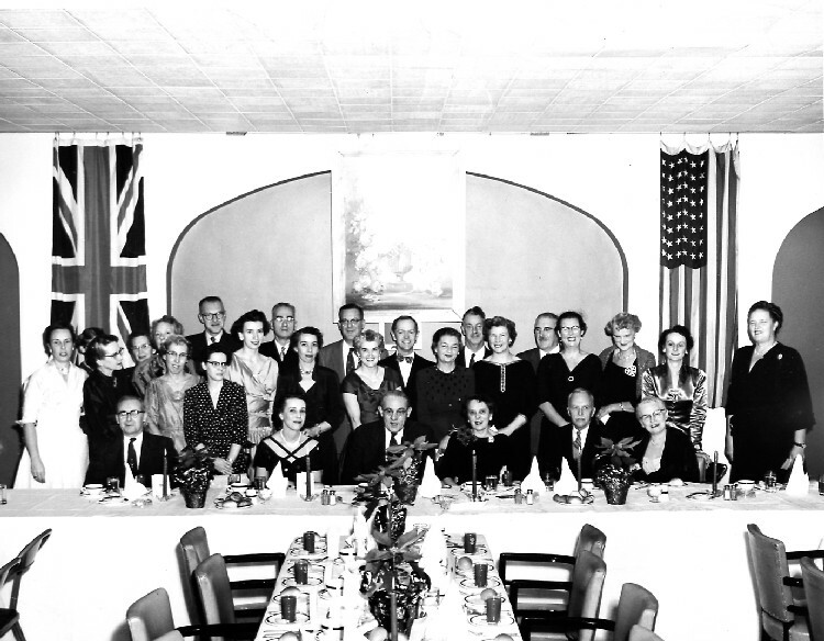 L-R: Mayor E M Hawkins seated centre, Eileen Weber seated to left of Mayor, Angus Mowat seated 2nd in from right