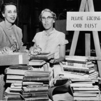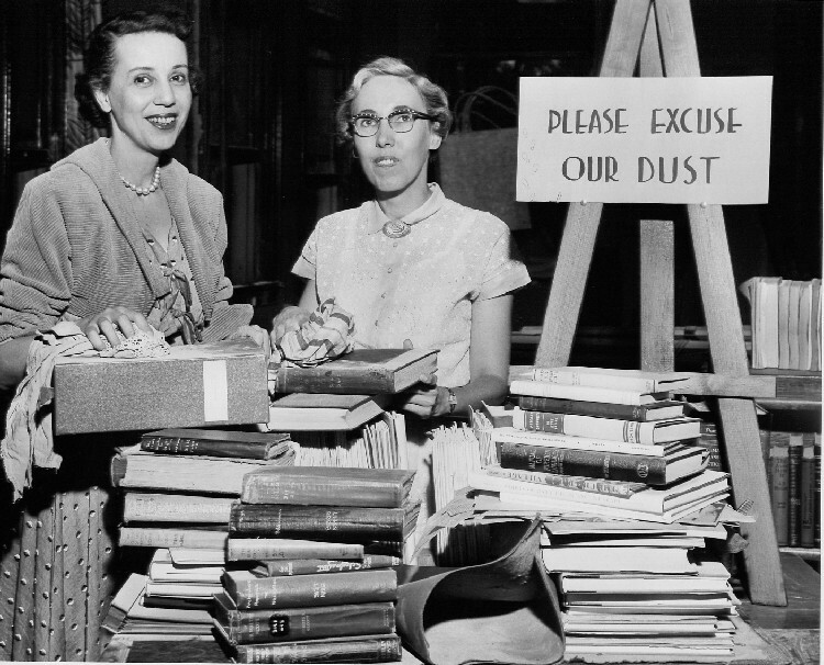 Niagara Falls Public Library during renovations 1955, Eileen Weber Chief Librarian, Helen Lothian