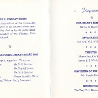 Programme of dedication of Claude A Findlay Room at Niagara Falls Public Library