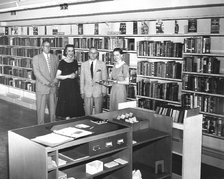 - en-CA L-R: William Sootheran Deputy Reeve, Eileen Weber Chief Librarian, George King Chairman Stamford Library Board, Elizabeth Jost librarian ;
