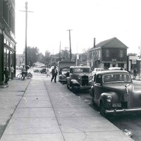 Morrison St, Eaton's Department Store left, White Rose Service Station in background to left ...
