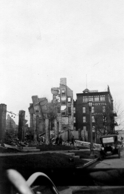 - Ruins of the Clifton Hotel after the fire December 31 1932, Lafayette Hotel in background