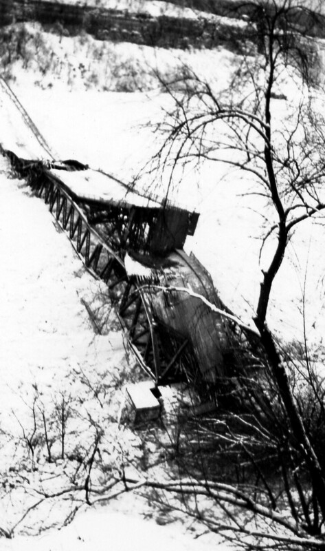 - en-CA A massive ice jam in January 1938 brought down the Upper Steel Arch Bridge. Traffic on the bridge was halted at 4 a.m. on January 27 and a death watch began... ;
