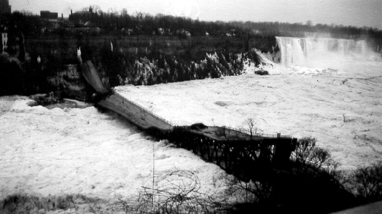- en-CA A massive ice jam in January 1938 brought down the Upper Steel Arch Bridge. Traffic on the bridge was halted at 4 a.m. on January 27 and a death watch began... ;