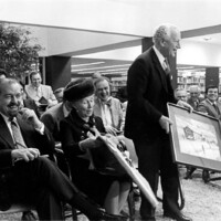 - en-CA Front Row L-R: The Honourable John Clement MPP, Mrs Michener, The Right Honourable Roland Michener Past Governor General of Canada accepting a gift ; Second Row: L-R: H G Kirley, Dr W H Ainslie members of Niagara Falls Public Library Board, Dr Parr ;