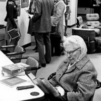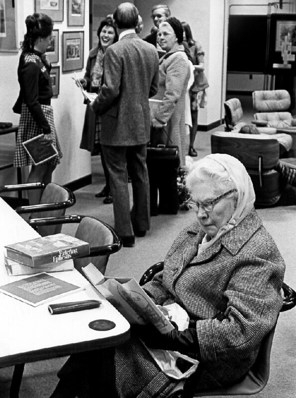 - Opening day at Niagara Falls Public Library Victoria Ave location, Mrs Helen Lyall reading