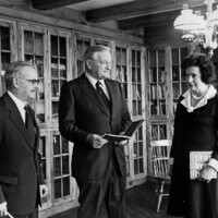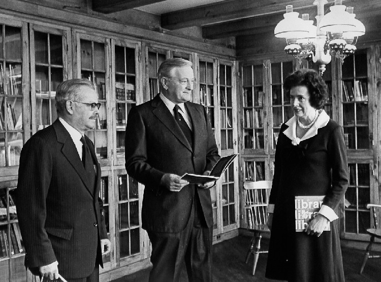 - L-R: unidentified, George H Hamilton Chairman Niagara Falls Public Library Board, Dorothy Van Slyke Chief Librarian