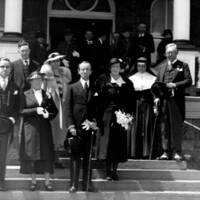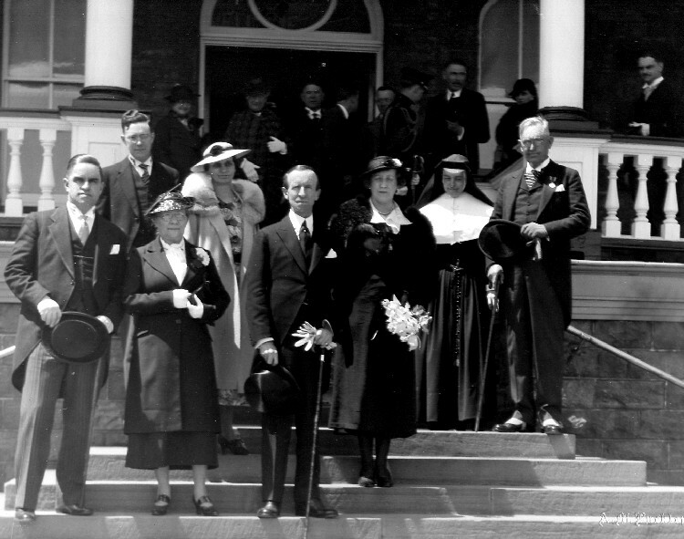 - en-CA From the Evening Review: The picture was taken by the Review photographer on May 14, 1936, when His Excellency Lord Tweedsmuir and the Lady Tweedsmuir accompanied by the Governor-General's mother and sister visited Niagara Falls. The Governor-general and Lady Tweedsmuir are shown on the steps of Loretto Academy at Falls View. In the front row, left to right are Hon. W. L. Houck, M.P.P.; Mrs. Charles W. Anderson; His Excellency and Lady Tweedsmuir. In the second row are former City Manager H. E. Goddard; Mrs. W. L. Houck; Mother Superior; former Mayor Charles W. Anderson. In the back row are Mrs. J. E. Teckoe; Mrs. Mary B. Lowthian; Ald. J. McAninch; Inspector C. F. Aldrey, Captain Adeane, A.D.C.; A. S. Redfern; Mrs. Redfern; former Ald. Carl D. Hanniwell