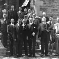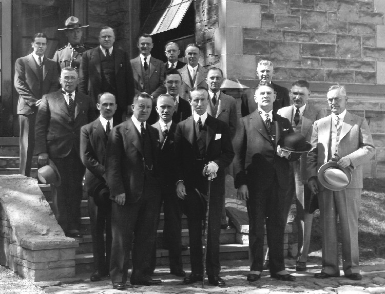 - From the Evening Review: On May 14, 1936, His Excellency visited the plant of the Oneida Community Limited and here is shown on the steps of the beautiful building overlooking the falls. In the front row are J. S. Bliss, general manager of the Oneida Community; D. E. Sanderson, His Excellency; former Ald. J. A. McAninch; Mr. Redfern; former Mayor Charles W. Anderson. In the second row are Ald. W. E. Scott; former City Manager H. E. Goddard; Fred A. Wiseman, superintendent; Ald. A. F. Donald. In the back row are W. Bruce Leslie; Sergeant Corless, R.C.M.P., Deputy Chief George Hughes, Inspector C. F. Aldrey; Walter Payne, and F. H. Leslie