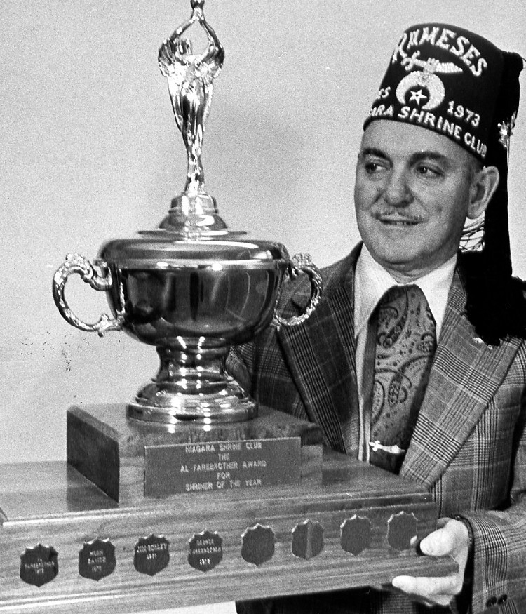 - George Farebrother receiving the Al Farebrother trophy for Shriner of the Year 1980