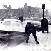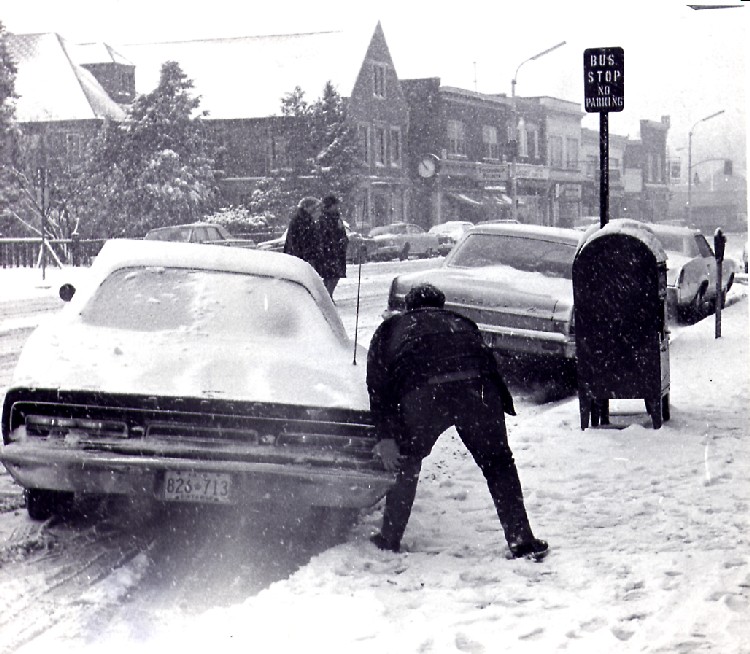 - Blizzard on east side of Main St Niagara Falls , Morse Funeral home to left