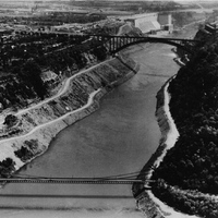 Aerial View of the Lewiston-Queenston Suspension and Arch Bridges - "The Old and the New"
